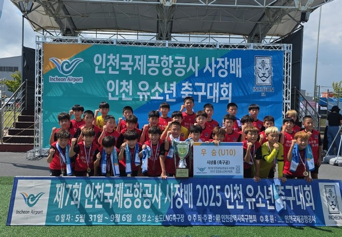 연수구청 유소년축구단(단장 이재호)이 제7회 인천국제공항공사 사장 배 인천 유소년 축구대회에서 10세 이하(U-10) 부문 우승을 차지했다.