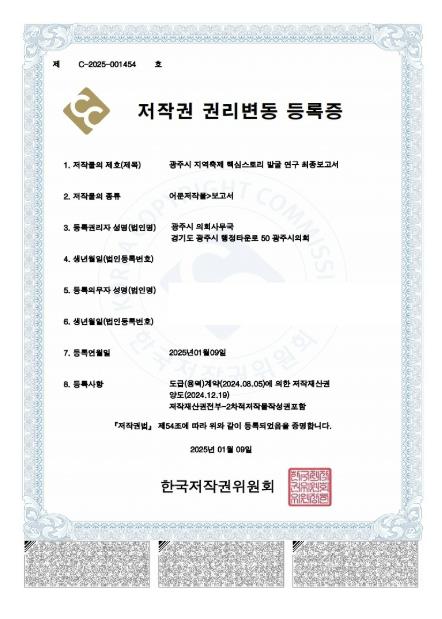 | ▲ 광주시의회, '지역축제 핵심스토리 발굴 연구 최종보고서' 저작권 등록 마쳐 |