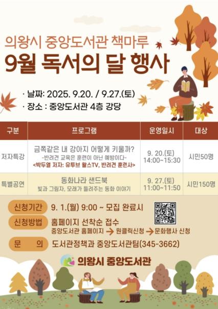 ▲ 의왕시 중앙도서관,‘9월 독서의 달’행사운영 |