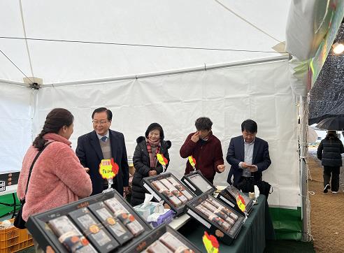 완주군 고산미소시장 천변주차장에서 ‘제9회 설맞이 완주곶감 직거래장터’가 활발히 열리고 있다.