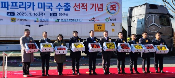 이날 열린 선적식에는 이병철 강진 부군수를 비롯해 농림축산식품부 박건우 사무관, 농림축산검역본부 호남지역본부 광주사무소 최형인 소장, 명창환 전남도 행정부지사, at센터 전종화 상임감사, 농업회사법인 코파(주) 신형민 대표, 농업회사법인 탐진들(주) 명동주 대표와 임직원 등 관계자들이 참석해 미국 첫 진출을 기념했다.