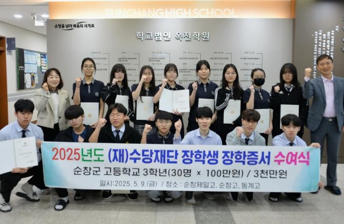 한편, 수양재단은 순창군과는 2014년부터 인연을 맺고 장학사업을 진행해 왔으며, 올해까지 총 210명의 고등학생에게 약 1억 9,800만 원의 장학금을 지원했다.