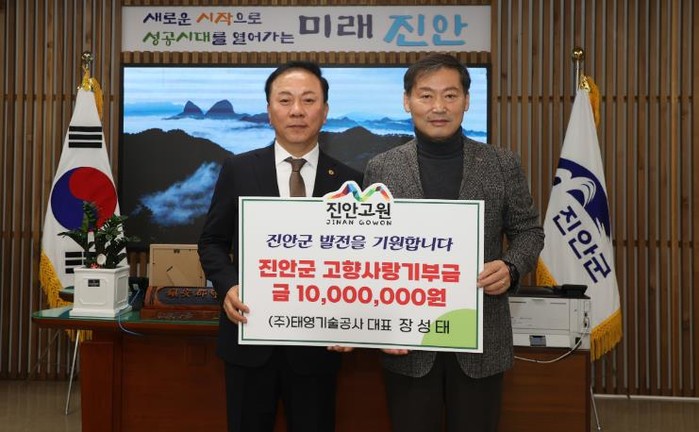 ㈜태영기술공사 장성태 대표는 지난 5일 진안군에 고향사랑기부금 1,000만원을 전달했다.