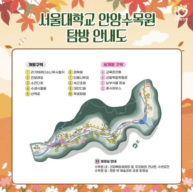 최대호 안양시장은 “앞으로 수목원의 보전·연구·교육 기능과 시민의 녹색 휴식 공간으로서의 역할이 조화롭게 공존·공생·공영할 수 있도록 서울대와 지속 협력해 나가겠다”며 “만추가경(晩秋佳景), 늦가을의 아름다운 경치 속에서 단풍을 즐기며 행복하고 뜻깊은 가을을 보내시길 바란다”고 말했다.
