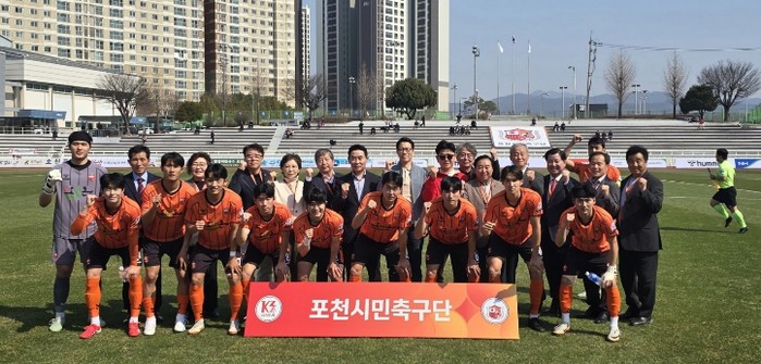 포천시는 포천시민축구단이 지난 22일 열린 2026 케이(K)3리그 홈 개막전에서 경주한수원축구단을 2대1로 제압하며 값진 승리를 거뒀다고 밝혔다.