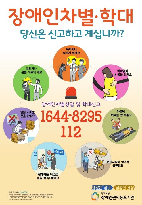 경기북부장애인권익옹호기관은 장애인의 차별 상담과 학대신고를 접수하고 피해자에 대한 법률, 의료 등 다양한 지원을 담당하는 장애인학대전문기관으로, 누구든지 장애인의 차별과 학대가 의심될 경우 1644-8295로 신고해 도움을 받을 수 있다.