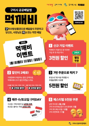특히, 3월 신학기 시즌을 맞아 구미 관내 3개 대학에서 ‘먹깨비’ 신규 가입자에게 할인 쿠폰 3,000원을 지급하고, 1만 원 이상 주문 시 구미사랑상품권 2,000원권을 환급하는 이벤트도 추진한다.