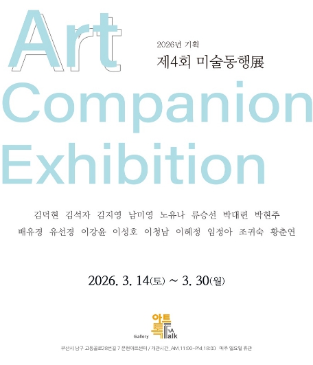 부산남구문화재단(이사장 김철)은 오는 3월 14일부터 3월 30일까지 문현아트센터에서 '2026 기획전시 제4회 미술동행전'을 개최한다고 밝혔다.