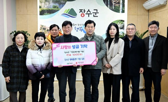 장수군 행복콜센터 직원들은 7일 장수군청에 방문해 어려운 이웃들을 위해 써달라며 십시일반 모은 성금 100만원을 기탁했다.