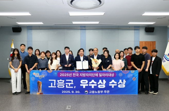 고흥군은 고용노동부가 주관한 ‘2025년 전국 지방자치단체 일자리대상’에서 “우수상”을 수상하는 영예를 안았다고 2일 밝혔다.