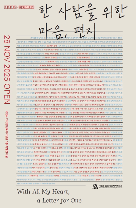 이번 특별전시는 11월 28일부터 2027년 10월까지 진행되며, 2026년 2월부터는 기념관 누리집에서 가상현실 영상(VR)을 통해서도 관람할 수 있다.