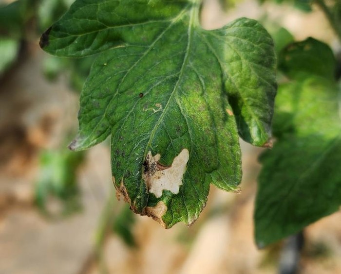 | ▲ 토마토 뿔나방 유충 피해를 본 잎. |