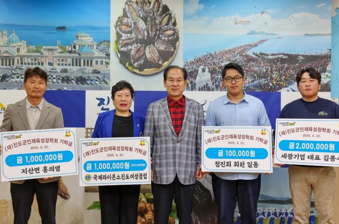 (재)진도군인재육성장학회가 군민과 단체로부터 장학금 약 7백만 원을 기탁받았다.
