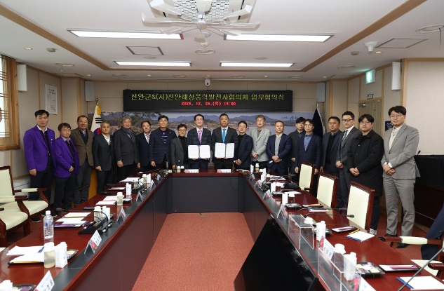 신안군은 지난 26일 군청 영상회의실에서 (사)신안해상풍력발전사협의체 및 태양광 발전사업자 8개사와 주민수용성 확보를 위한 기여금 조성 업무협약을 각각 체결했다.