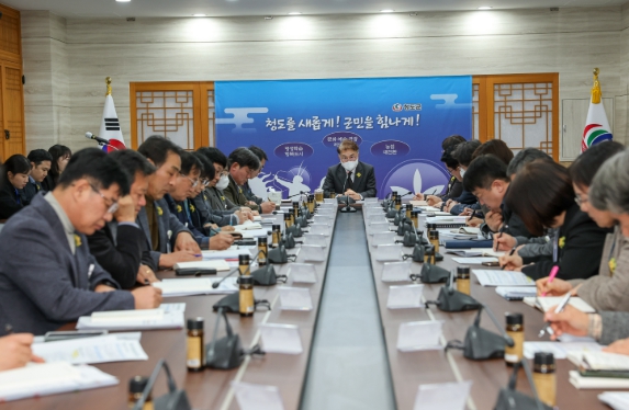 청도군은 지난 14일 군청 제1회의실에서 국장을 비롯한 실과소장 등 주요 간부 공무원 20여 명이 참석한 가운데 ‘2026년도 국․도비 예산확보를 위한 대책 회의’를 개최했다.