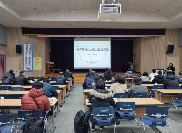 청도군은 지난 14일 농업기술센터 대회의실에서 ‘한국딸기수출통합조직 케이베리(k-berry)’와 공동으로 청도 관내 딸기 생산농가 및 관계자가 참석한 가운데 딸기 해외수출 활성화를 위한 설명회를 가졌다.