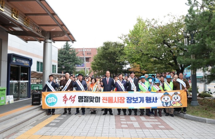 상주시는 추석 명절을 앞두고 경기침체로 어려움을 겪고 있는 전통시장 상인들의 사기 진작과 내수경기 활성화를 위해 10월 2일에 전통시장 장보기 행사를 진행했다.
