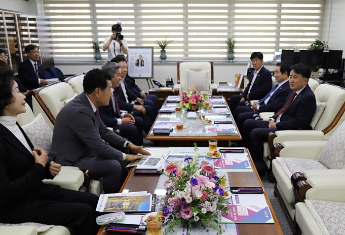 진천군의회는 6월 11일, 진천군의회를 방문한 김영환 충청북도지사와 간담회를 갖고, 지역 발전을 위한 주요 현안을 논의했다.