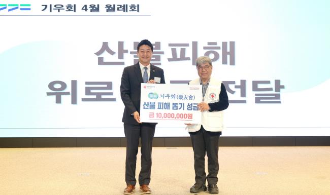 이날 월례회에서 김 의장은 영남지역 대형 산불로 인한 피해 복구, 이재민 지원을 위해 마련된 기우회 위로 성금 1천만 원을 대한적십자사 경기도지사에 전달, “이번 성금에는 기우회 회원들의 따뜻한 연대와 위로의 뜻이 담겨있다. 산불 피해 지역의 빠른 회복을 위해 함께 하겠다”라고 밝혔다.