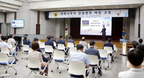 경기도의회(의장 장현국)가 15일 직원 간 상호 존중하는 조직문화를 정착시키기 위해 ‘갑질행위 예방교육’을 실시했다.
