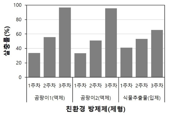 | ▲ 친환경 방제제 효과 실내 실험 결과 |