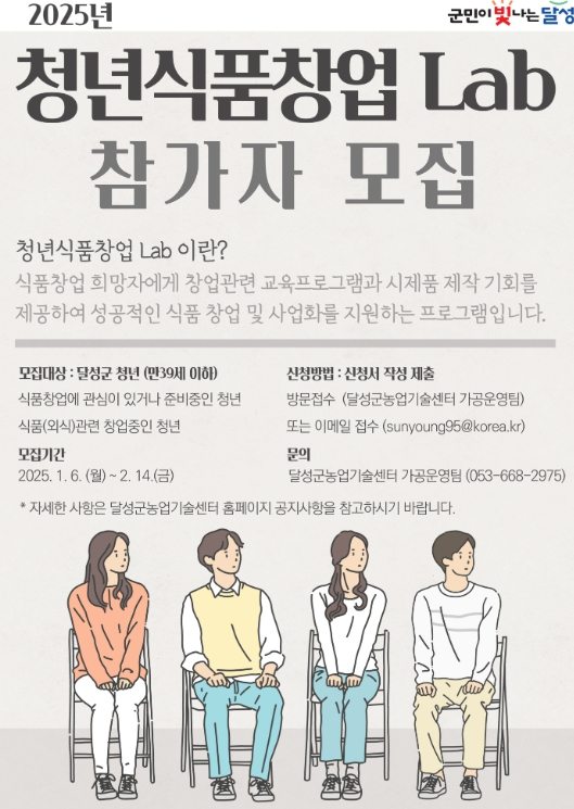 | ▲ 달성군, 청년식품창업 Lab 참가자 모집 |