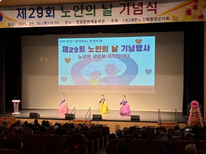 청양군은 30일 청양군 문화예술회관에서 10월 경로의 달을 맞아 대한노인회 청양군지회 주관으로 제29회 노인의 날 기념행사를 성대히 개최했다.