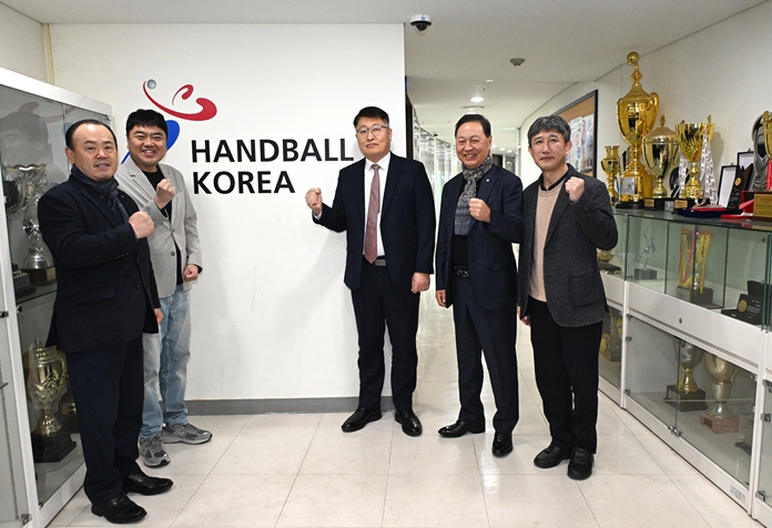| ▲ 김태균 서울시 행정1부시장이(우측 세 번째) 대한핸드볼연맹을 방문해 서울시의 올림픽 유치 의지를 피력하고 원종호 부회장(좌측 두 번째), 정규오 사무처장(우측 첫 번째) 등 협회 관계자들과 기념사진을 촬영하고 있다. |