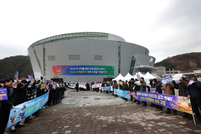 1월에는 8백여 명의 군민이 무주태권도원에서 열린 대한체육회 현장 평가 실사에 동참해 유치 기원 열기를 보여줬으며 황인홍 무주군수가 실사 현장에서 태권도 종목에 주안점을 두고 전북 유치의 당위성을 피력해 평가 위원들의 관심을 끌었다.
