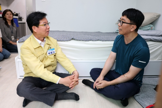 박병규 광산구청장이 지난 29일 ‘살던집 프로젝트’의 회복 및 자립 준비 공간인 ‘중간집’에서 생활하며, 의료‧돌봄 서비스를 받고 있는 주민을 위문했다.