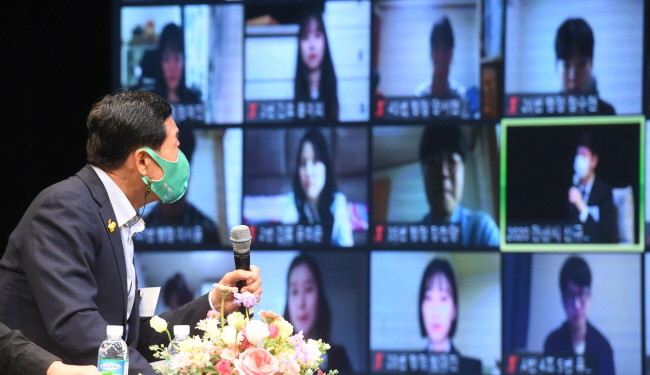 나머지 신규 공무원들은 이를 화상회의 플랫폼 ‘줌(Zoom)’을 통해 실시간으로 지켜봤고, 행사장 내 설치된 대형 LED화면을 통한 ‘새내기 공직자 토크콘서트’도 진행됐다.