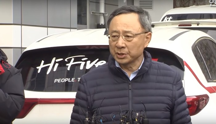 ▲25일 오전 황창규 KT회장이 전날 화재가 발생한 서울 서대문구 충정로 KT아현국사를 찾아 기자회견을 하는 모습. <사진=연합뉴스 TV 갈무리> |