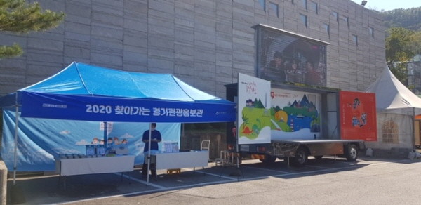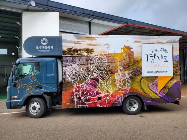 특수 제작된 2.5톤 트럭을 이용해 지역을 직접 방문해 홍보하는 이동식 홍보관의 이름은 ‘찾아가는 경기관광 홍보관’. 차량 안에는 LED 패널이 탑재돼 있어 경기관광 홍보영상을 상영하며, 홍보부스를 설치해 관광안내책자를 배부하고 있다.