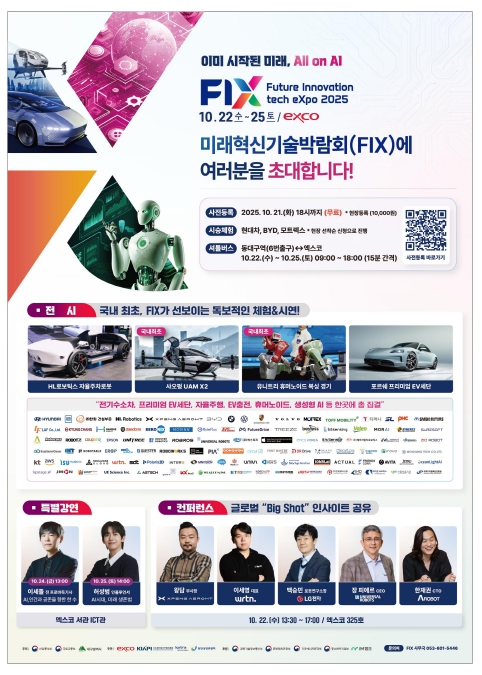‘이미 시작된 미래, All on AI’를 주제로 ‘2025 미래혁신기술박람회’가 10월 22일부터 25일까지 4일간 대구 엑스코에서 열린다.