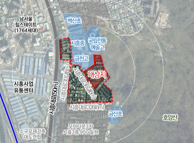 | ▲ 위치도(금천구 시흥동 1005번지 일대 모아주택) |