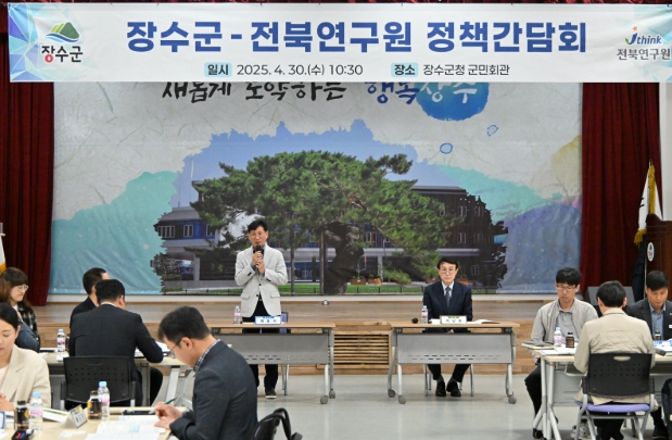 장수군은 30일 장수군청 군민회관에서 전북특별자치도의 대표 정책연구기관인 전북연구원(원장 이남호)과 지방소멸 위기 극복과 지역미래 성장전략 모색을 위한 정책간담회를 개최했다.