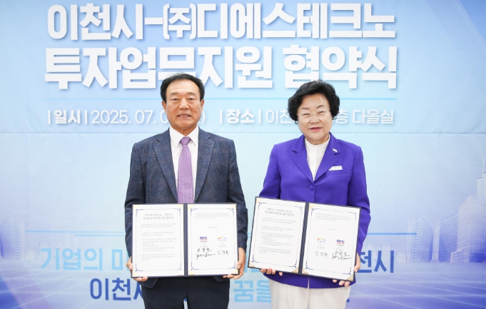 이천시가 7월 7일 반도체 부품 제조 핵심 기업인 ㈜디에스테크노와 신규 투자유치를 위한 업무협약(MOU)을 체결했다.