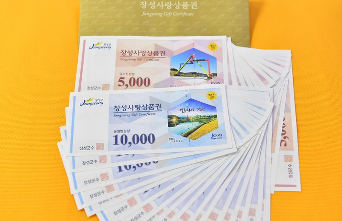 지원금은 장성사랑상품권으로 지급된다. 군은 상품권의 확보를 위해 27일부터 장성사랑상품권 판매를 일시 중단했다.