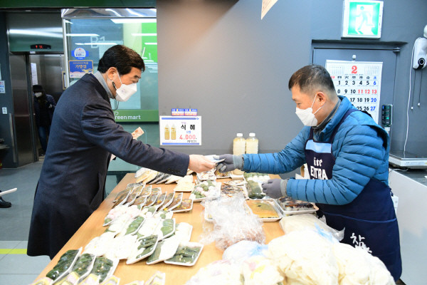 | ▲ 윤화섭 안산시장 “안전한 설 연휴 보내세요”(다농마트). |