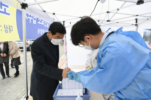 | ▲ 윤화섭 안산시장 “안전한 설 연휴 보내세요”(상록수보건소 선별진료소). |