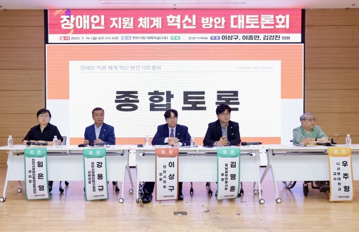 좌장을 맡은 이상구 의원은 “오늘 제안된 다양한 의견은 천안시 장애인 정책의 현주소를 점검하고 실질적인 개선방향을 모색하는 데 중요한 자료가 될 것”이라며, “이번 토론회가 장애인 지원체계를 더욱 정교하고 균형 있게 설계하는 밑거름이 되기를 기대한다”라고 강조했다.