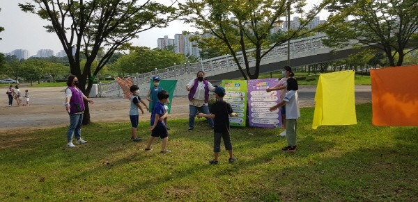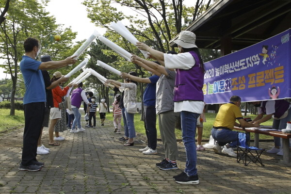 코로나19 예방수칙 철저히 준수- 놀이활동가와 어린이들 함께 야외 지형, 지물 이용해 놀이