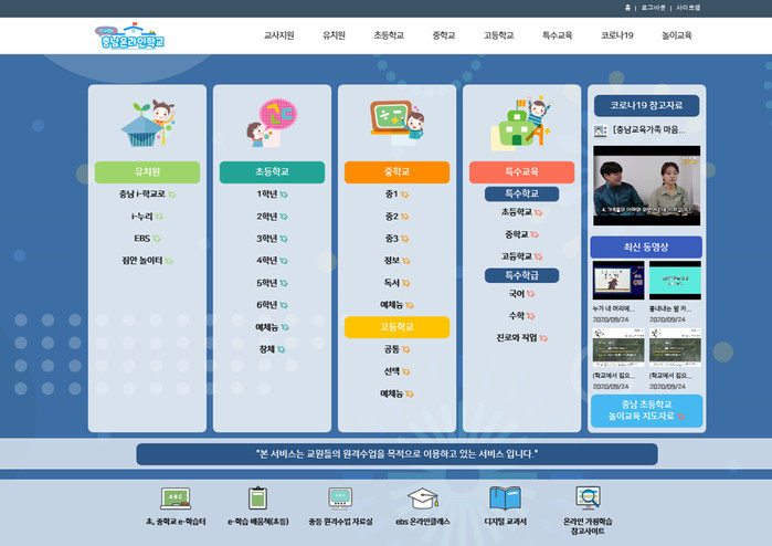 충남교육청, 유·초·중고·특수 대상 쌍방향 원격수업 콘텐츠 및 자료 게시