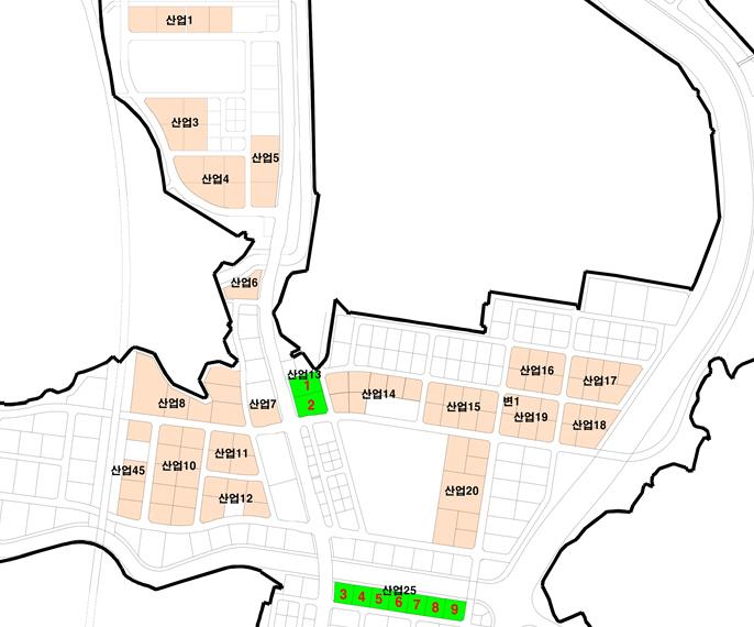 ▲ 송산그린시티 남측지구 분양공급토지 필지별 위치도(연두색이 이번 분양공급토지) |