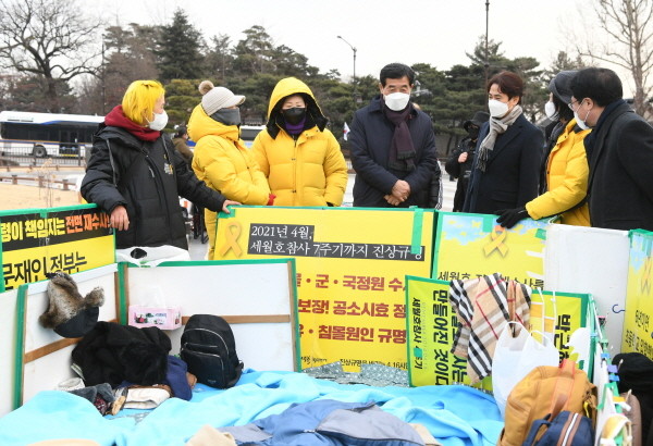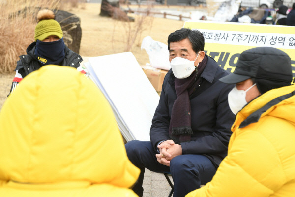 [프레스뉴스] 강보선 기자= 윤화섭 안산시장은 4일 오후 청와대 분수대 앞에서 세월호 진상규명 등을 요구하며 무기한 농성 중인 세월호 유가족들을 만나 격려했다.