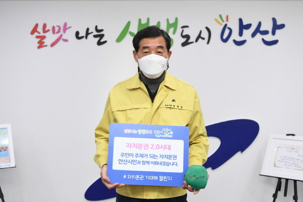 [프레스뉴스] 강보선 기자= 윤화섭 안산시장은 12일 ‘자치분권 2.0시대’를 응원하는 ‘#자치분권 기대해 챌린지’에 동참했다.