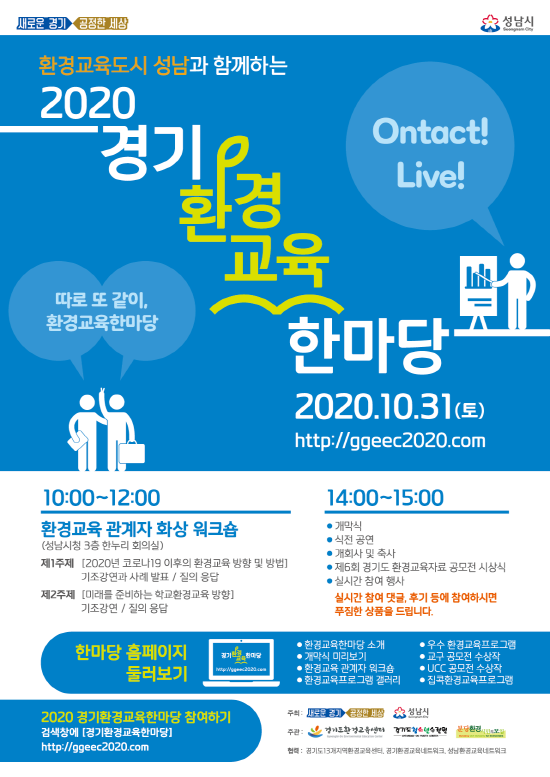 경기도와 성남시가 공동으로 주최하고, 경기도환경교육센터와 경기도청소년수련원, 분당환경시민의모임 등이 공동으로 주관하는 비대면 ‘2020 경기환경교육 한마당’ 행사가 오는 31일 열린다.