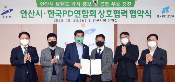안산시(시장 윤화섭)는 26일 도시 브랜드 가치 홍보 및 공동 우호 증진을 위해 사단법인 한국PD연합회와 상호협력 업무협약(MOU)을 체결했다.