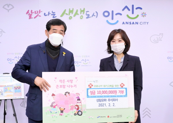 [프레스뉴스] 강보선 기자= 안산시(시장 윤화섭)는 2일 성림유화㈜(대표 김민정)로부터 관내 코로나19로 어려움을 겪고 있는 취약계층을 위한 후원금 1천만 원을 기탁 받았다.