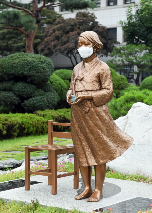 안산시는 시청 앞에 세워진 평화의 소녀상에 밤사이 누군가가 마스크를 씌웠다고 28일 밝혔다.